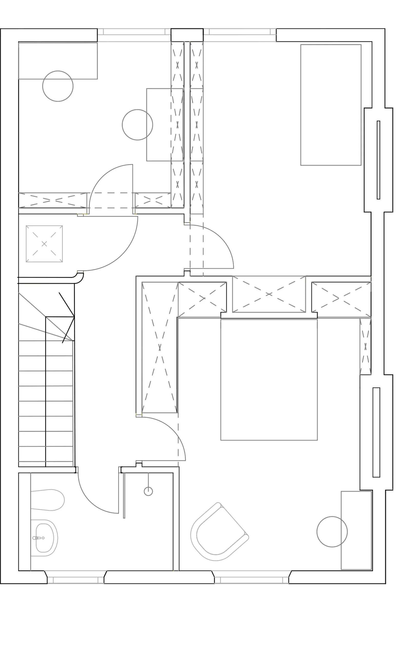 Our proposal introduces a series of thoughtful interventions to create a well-balanced home with spacious rooms, an organic flow between the areas and an improved, more functional layout. Discreet storage solutions will be built in to keep the spaces clear and calm, bringing a relaxed and comfortable feel.